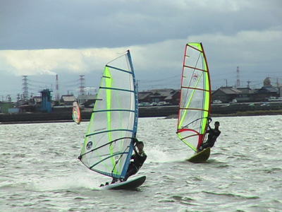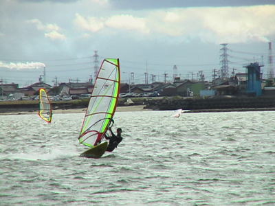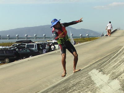 いいスロープで波乗りのトレーニングバッチリいい感じ! これからの風待ちはこれできまり!! 初トライした服部さんには脱帽です。。 |