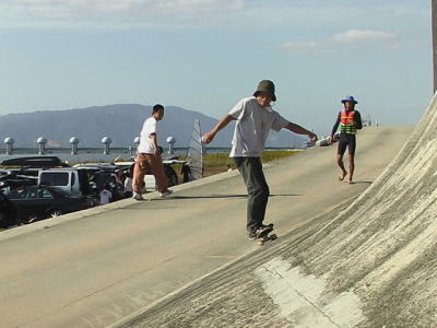 いいスロープで波乗りのトレーニングバッチリいい感じ! これからの風待ちはこれできまり!! 初トライした服部さんには脱帽です。。 |